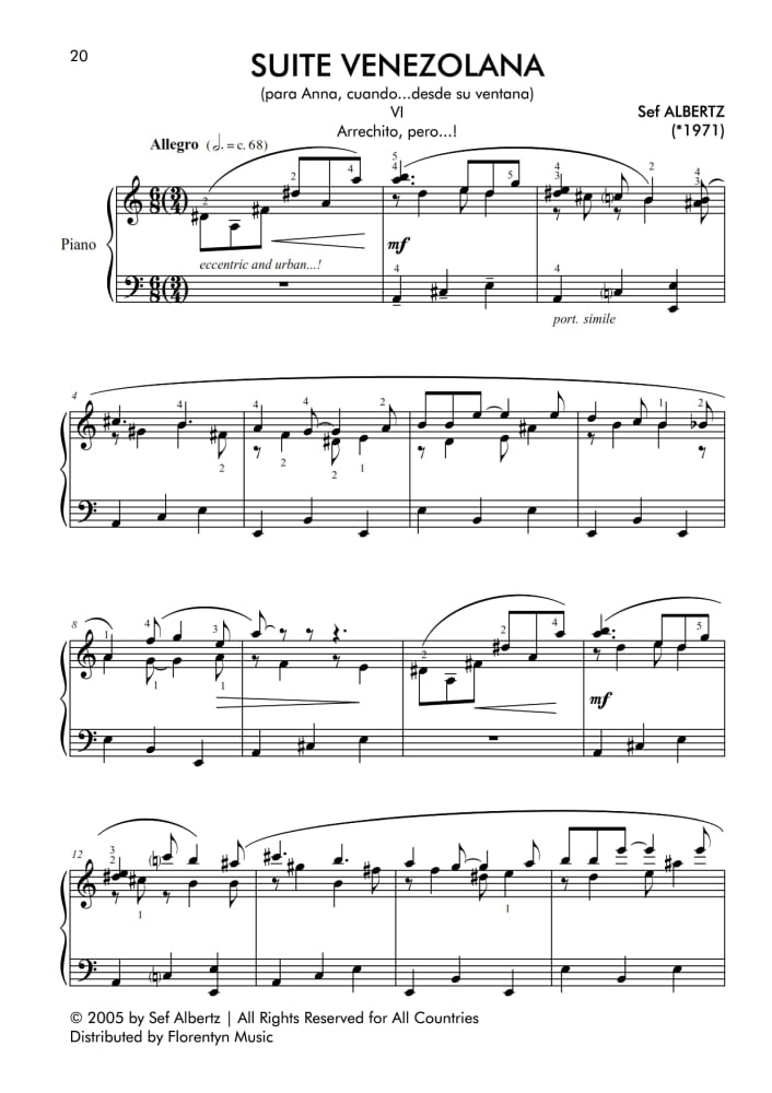 Das Notenbuch enthält eine Auswahl von 10 Stücken, einschließlich der entsprechenden Illustrationen von Eduard Alberto Maak (© by Florentyn Music).